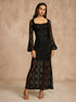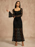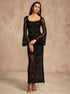 Dantel Çan Kollu Abiye Astarlı Elbise