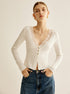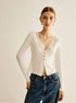 Dantel Kenarlı Düğmeli V Yaka Bluz