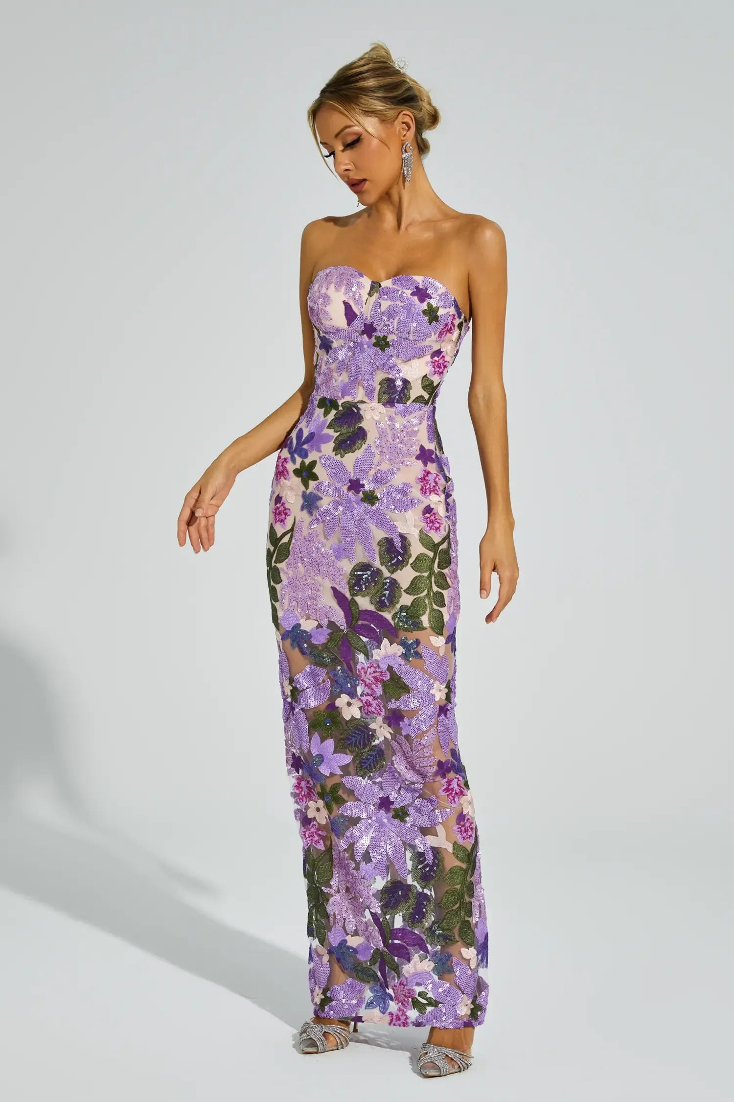 Olyssa Leanna Çiçek İşlemeli Maksi Elbise