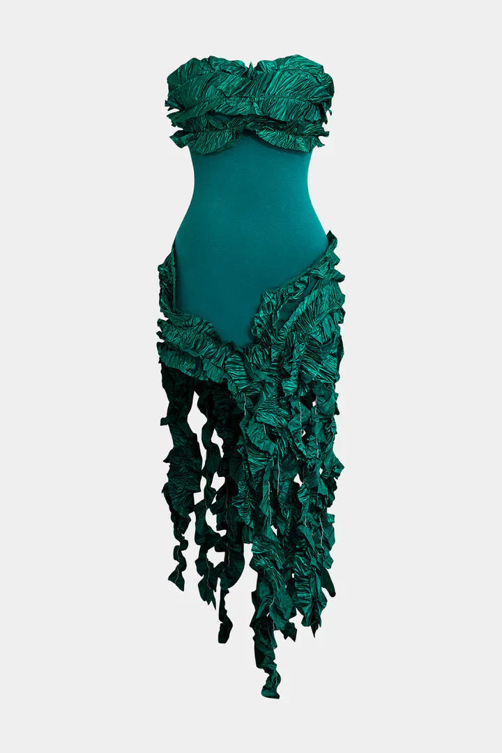 • Kesim: Asimetrik siluet, vücuda zarifçe oturan form