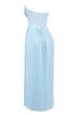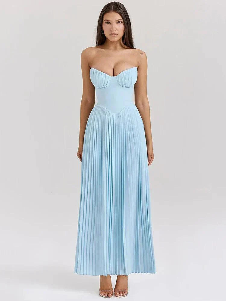 Lina Açık Mavi Straplez Piliseli Maxi Elbise