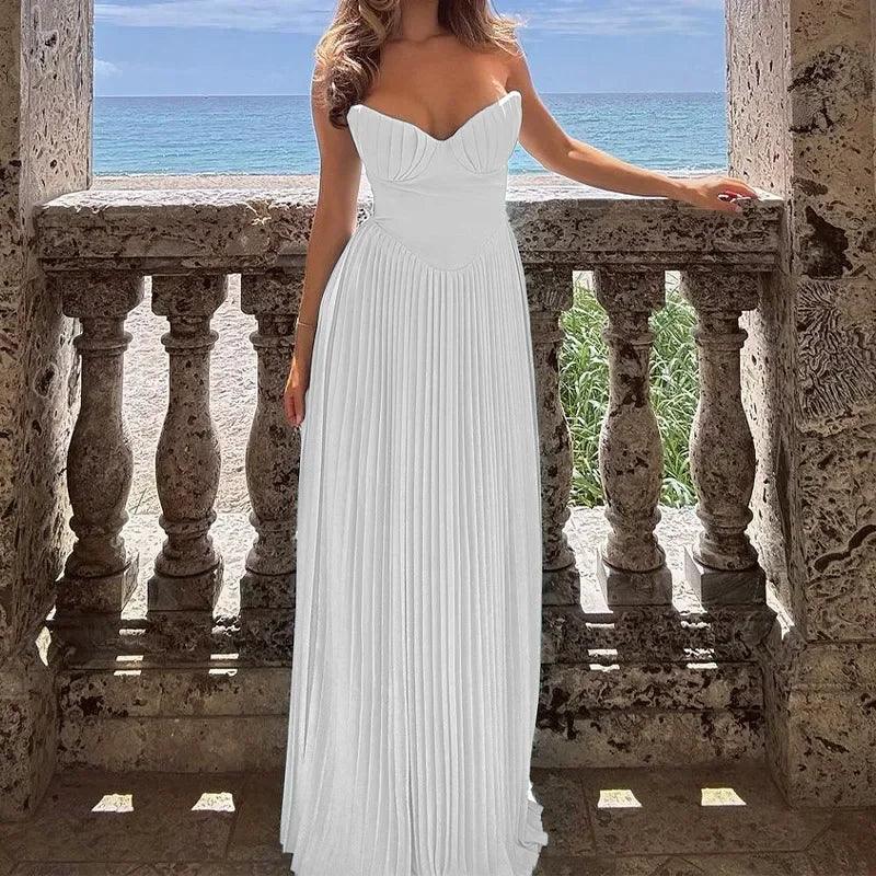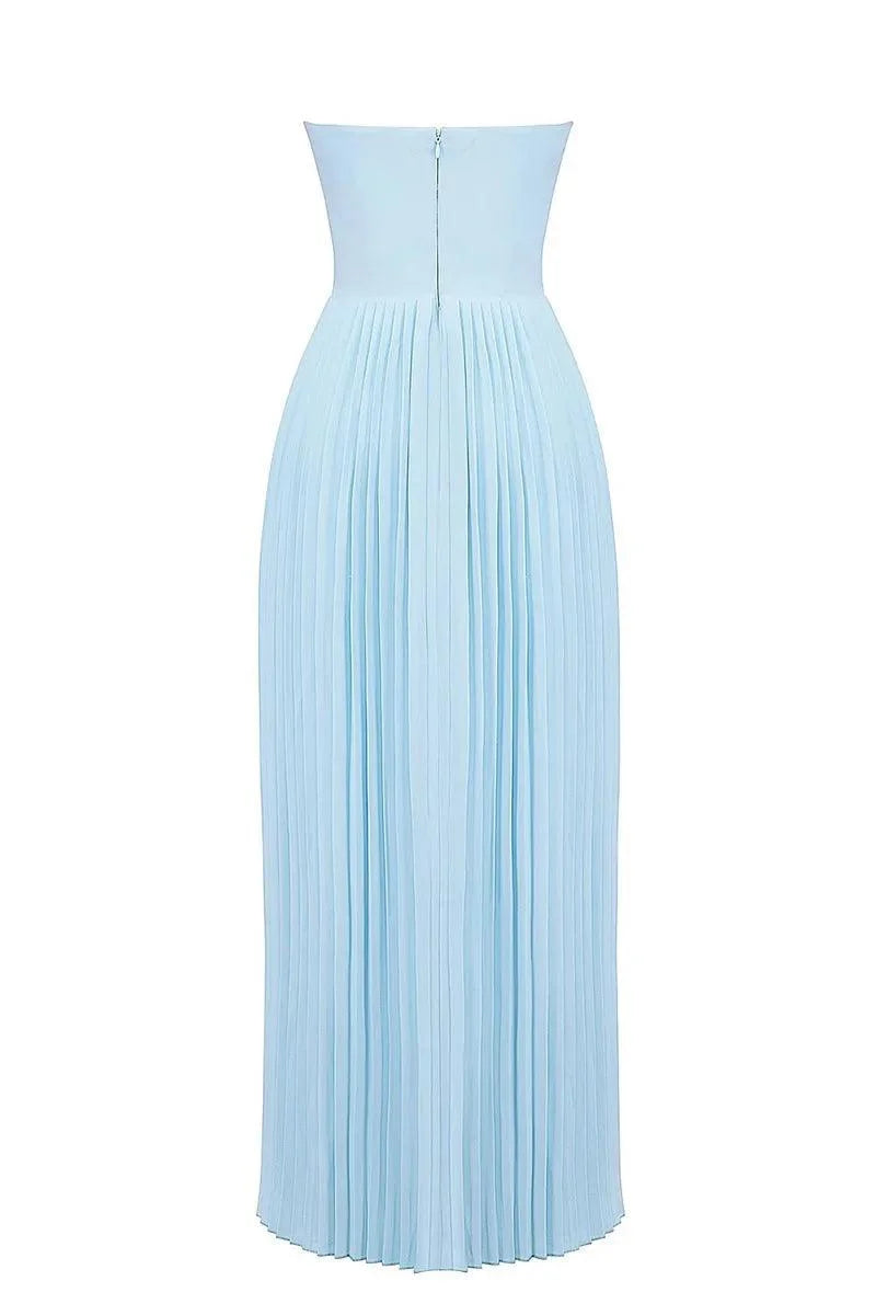 Olyssa Lina Açık Mavi Straplez Piliseli Maxi Elbise