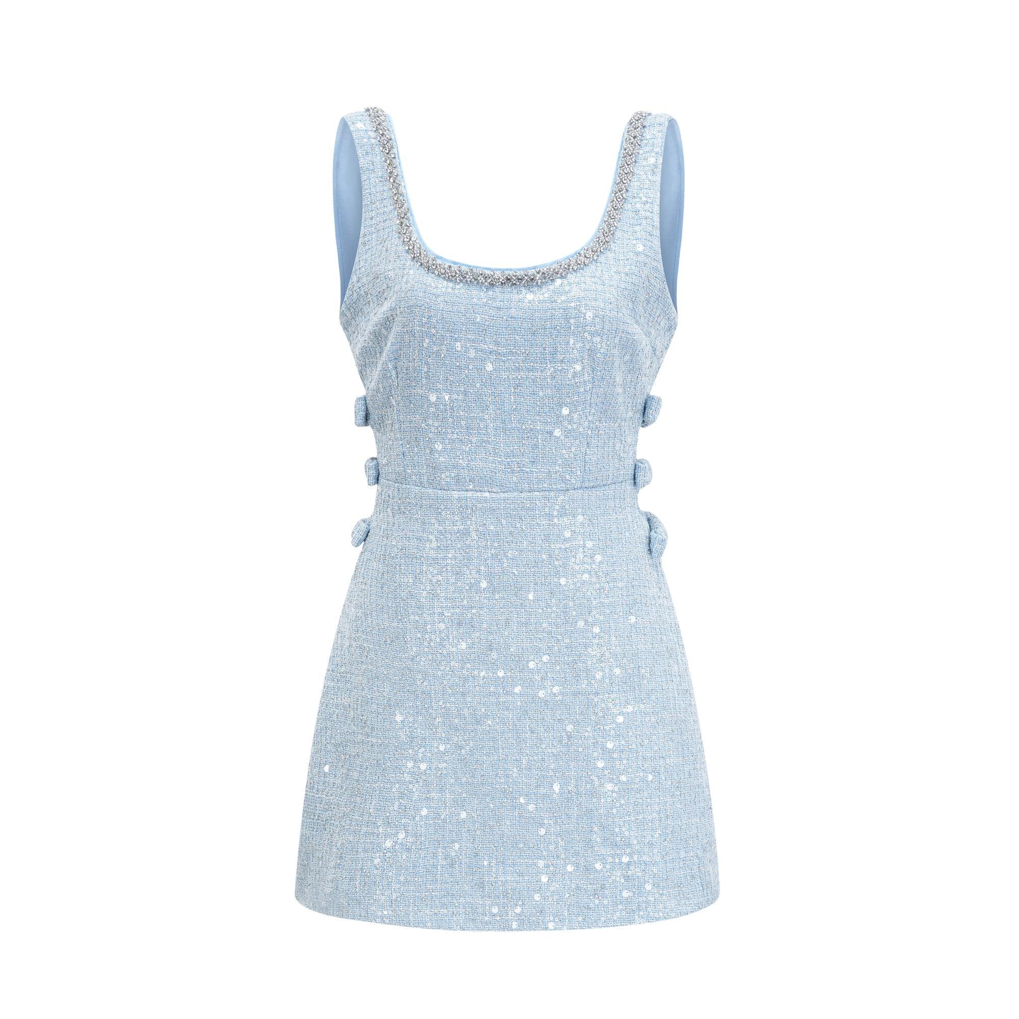 Manon Charm Açık Mavi Işıltılı Tweed Mini Elbise