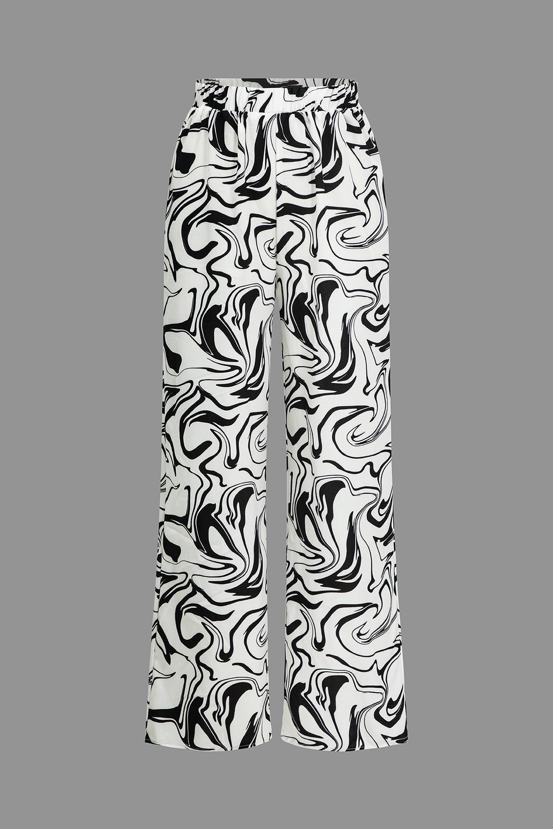Mermer Desenli Yüksek Bel Düz Paça Pantolon