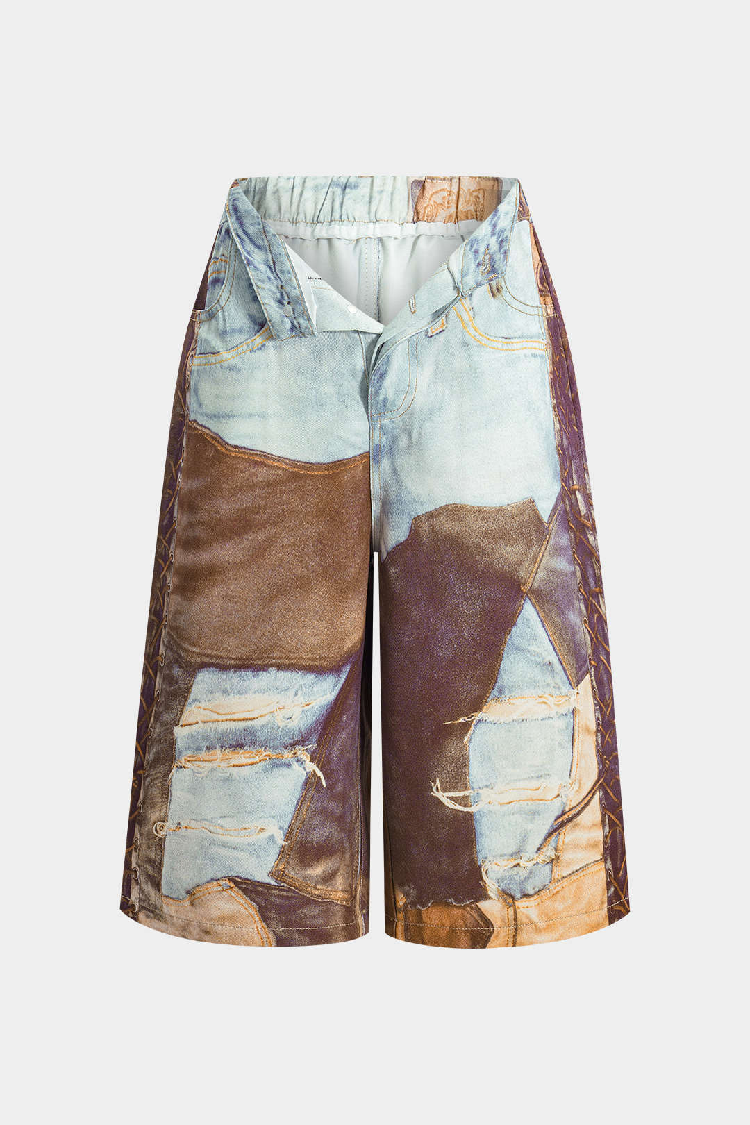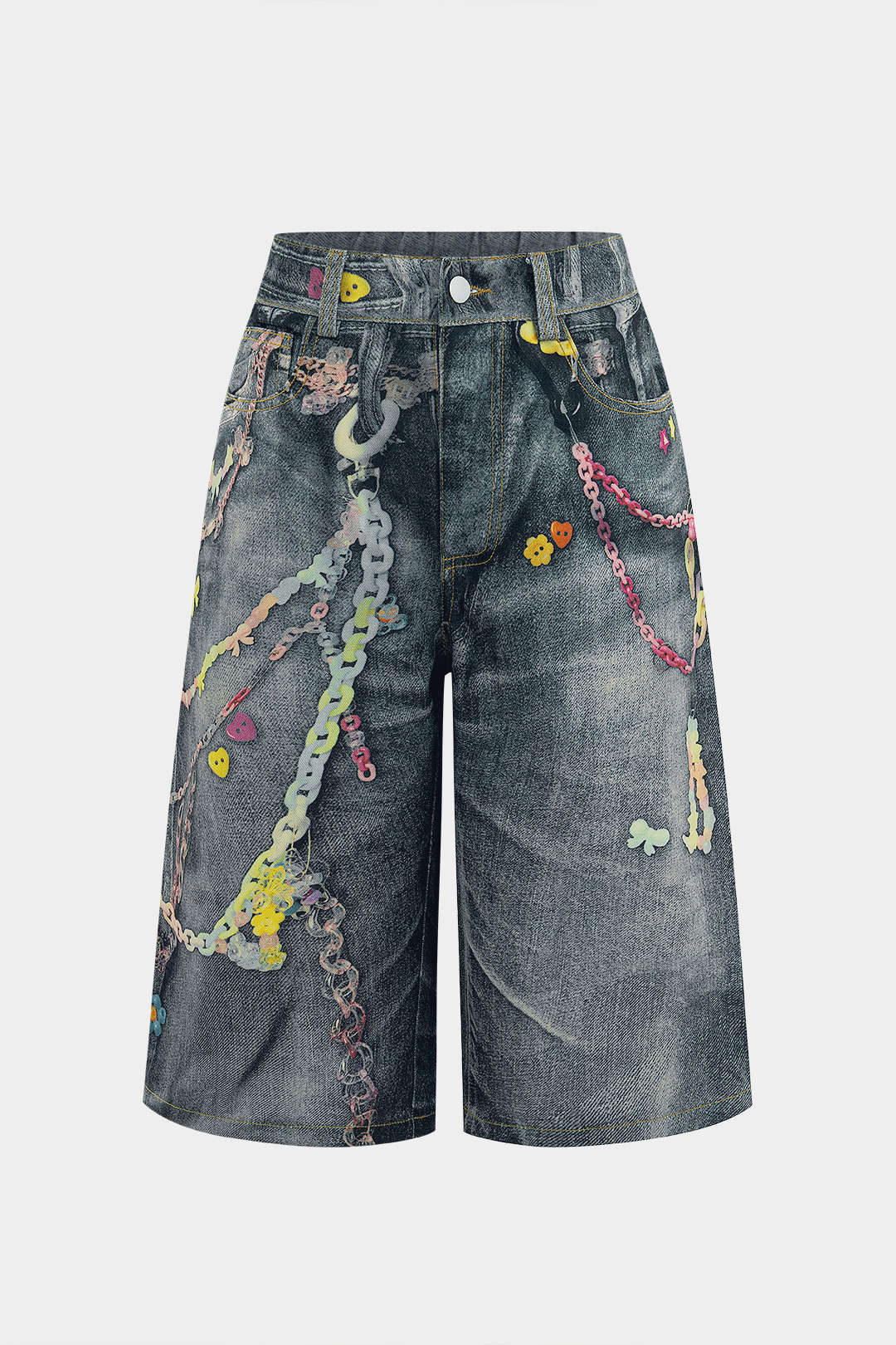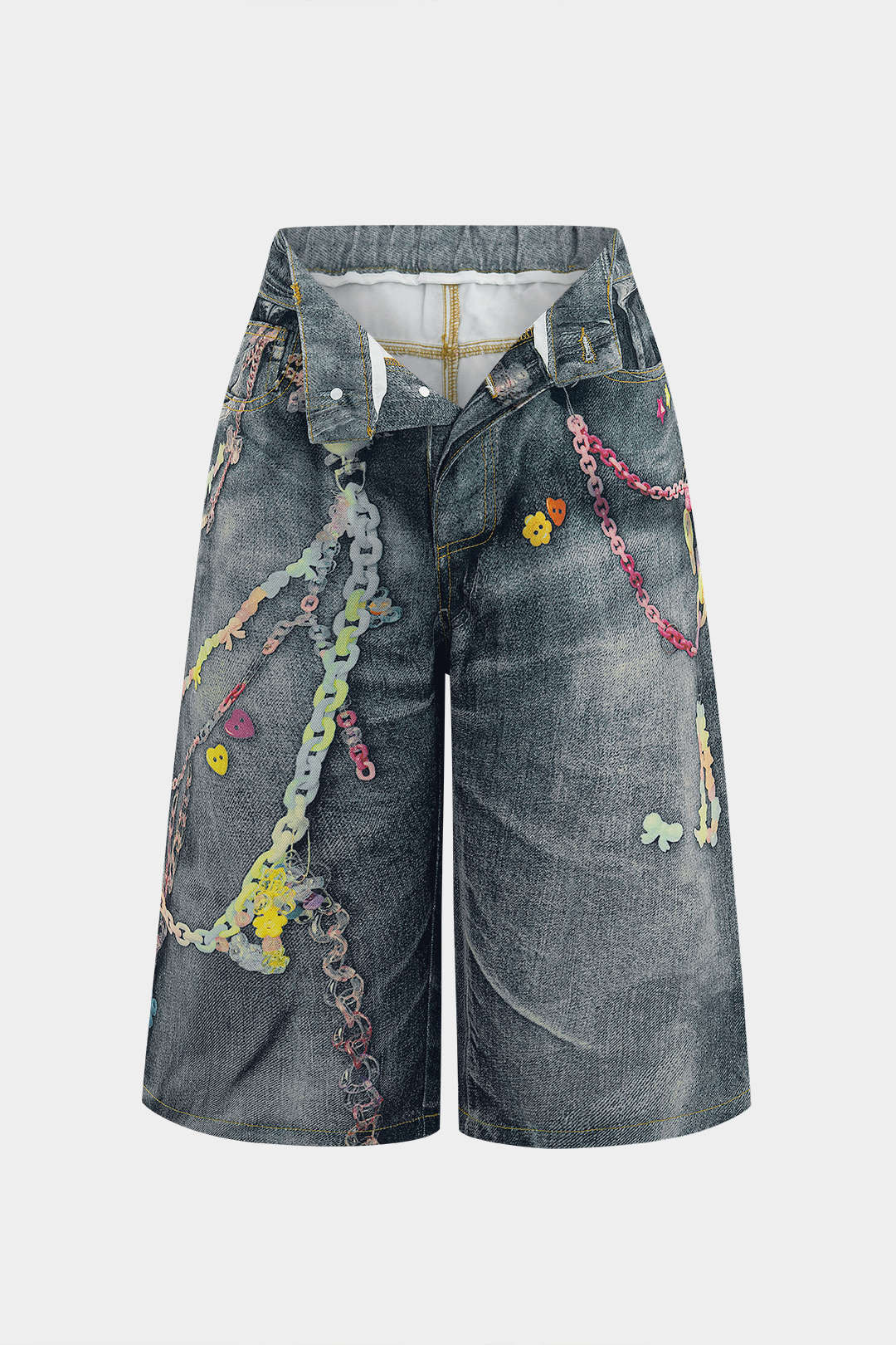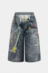 Zincir Desenli Geniş Paça Şort