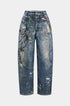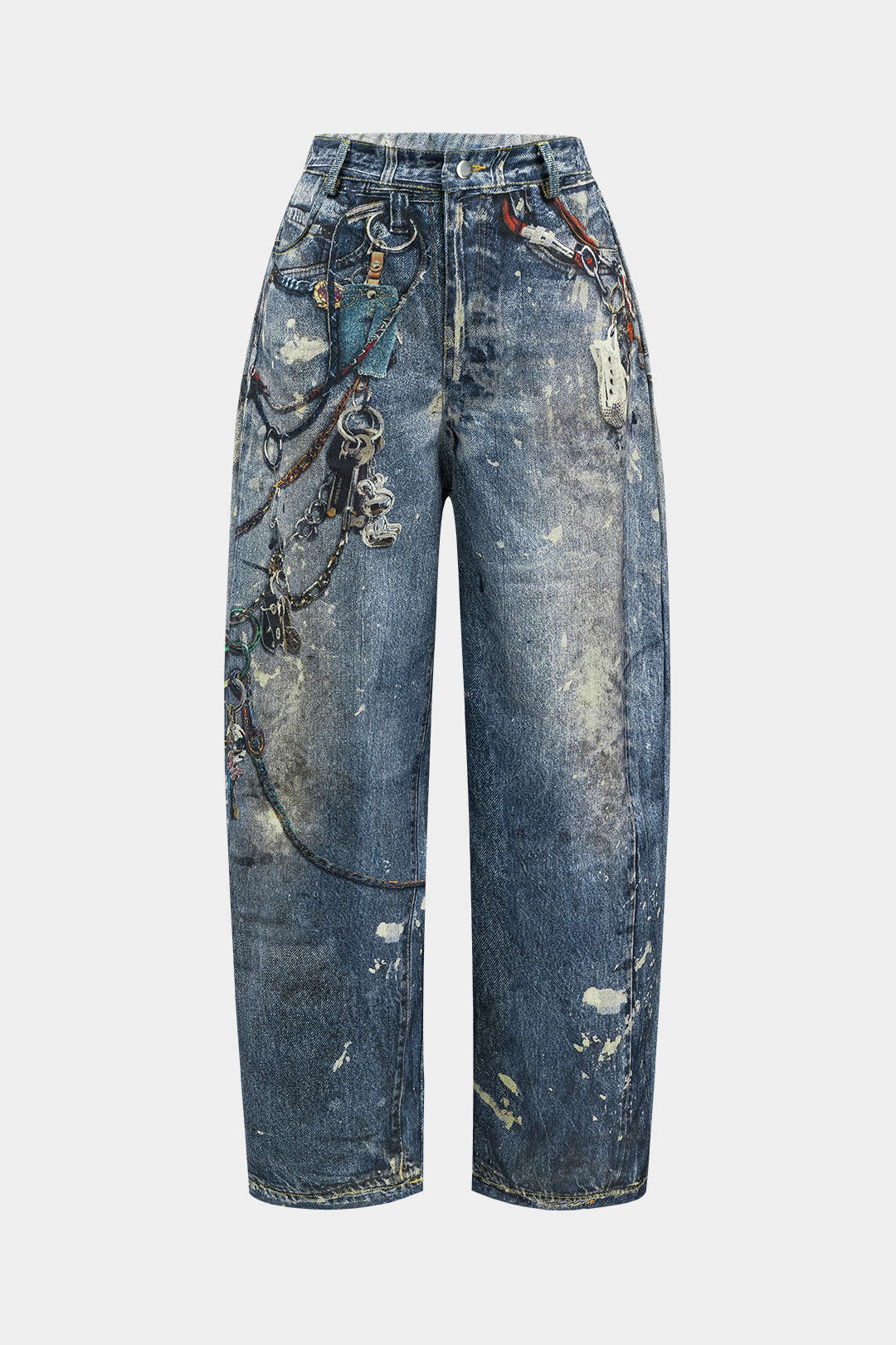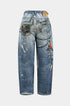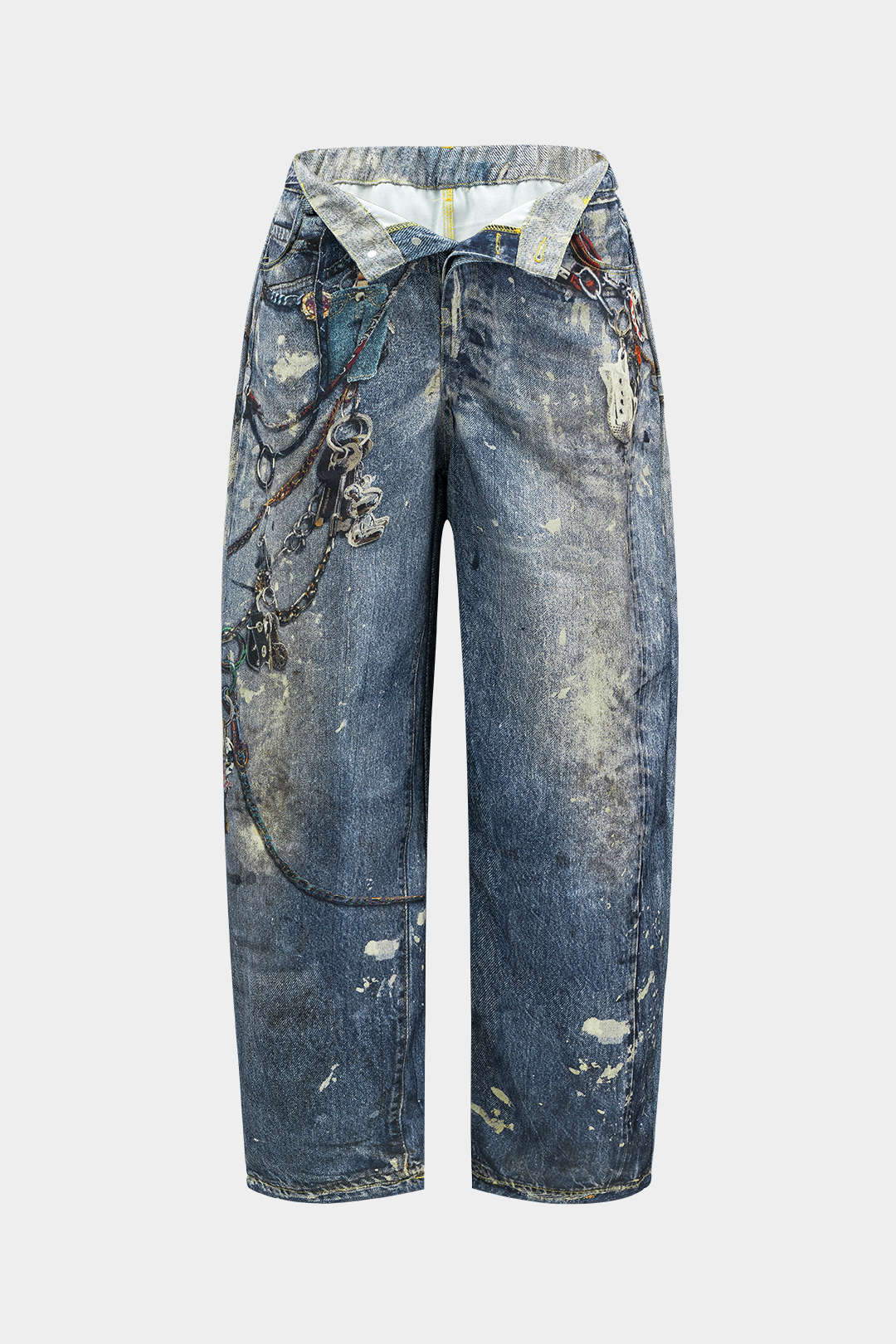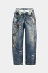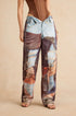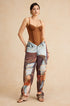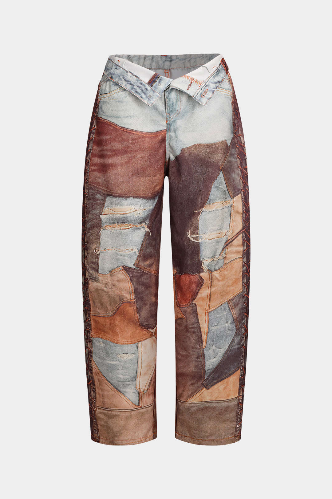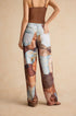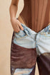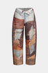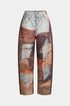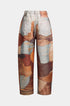 Renk Bloklu Düğmeli Geniş Paça Pantolon
