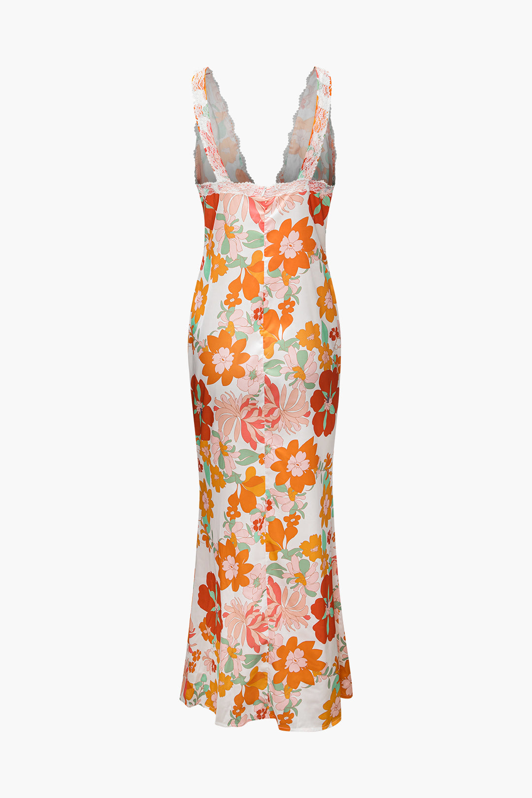 Çiçek Desenli Dantel Detaylı V Yaka Maxi Elbise