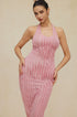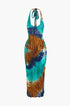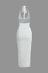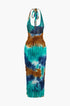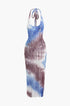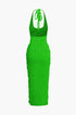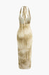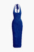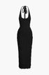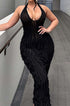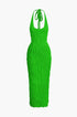 Şeffaf Volanlı Doku Halter Sırt Açık Maxi Elbise