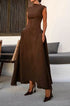 Metallic Dekor Fermuar Askısız Maxi Elbise