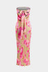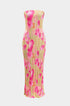 Çiçek Desenli Plise Geri Bağlamalı Straplez Maxi Elbise