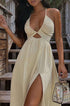 Sırt Dekolteli V Yaka Yırtmaçlı Midi Elbise