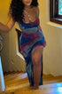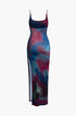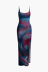 Tie Dye Sırt Açık Yırtmaçlı Slip Midi Elbise
