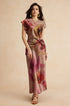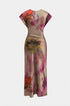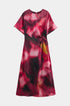 Tie Dye Fırfırlı Kesik Düğme Dönüşüm Knot Midi Elbise