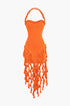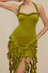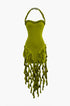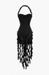 Volanlı Püskül Halter Bustiyer Mini Elbise