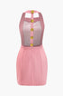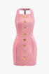 Çiçekli Düğmeli Halter Yaka Sırt Açık Mini Elbise
