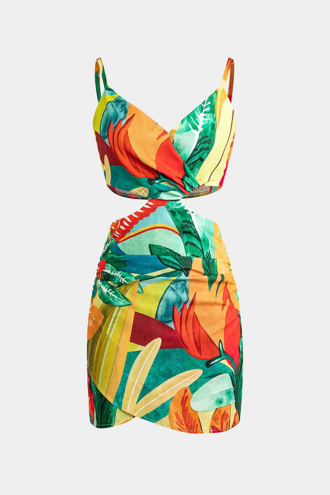 Yaprak Desenli Kesik Mini Elbise