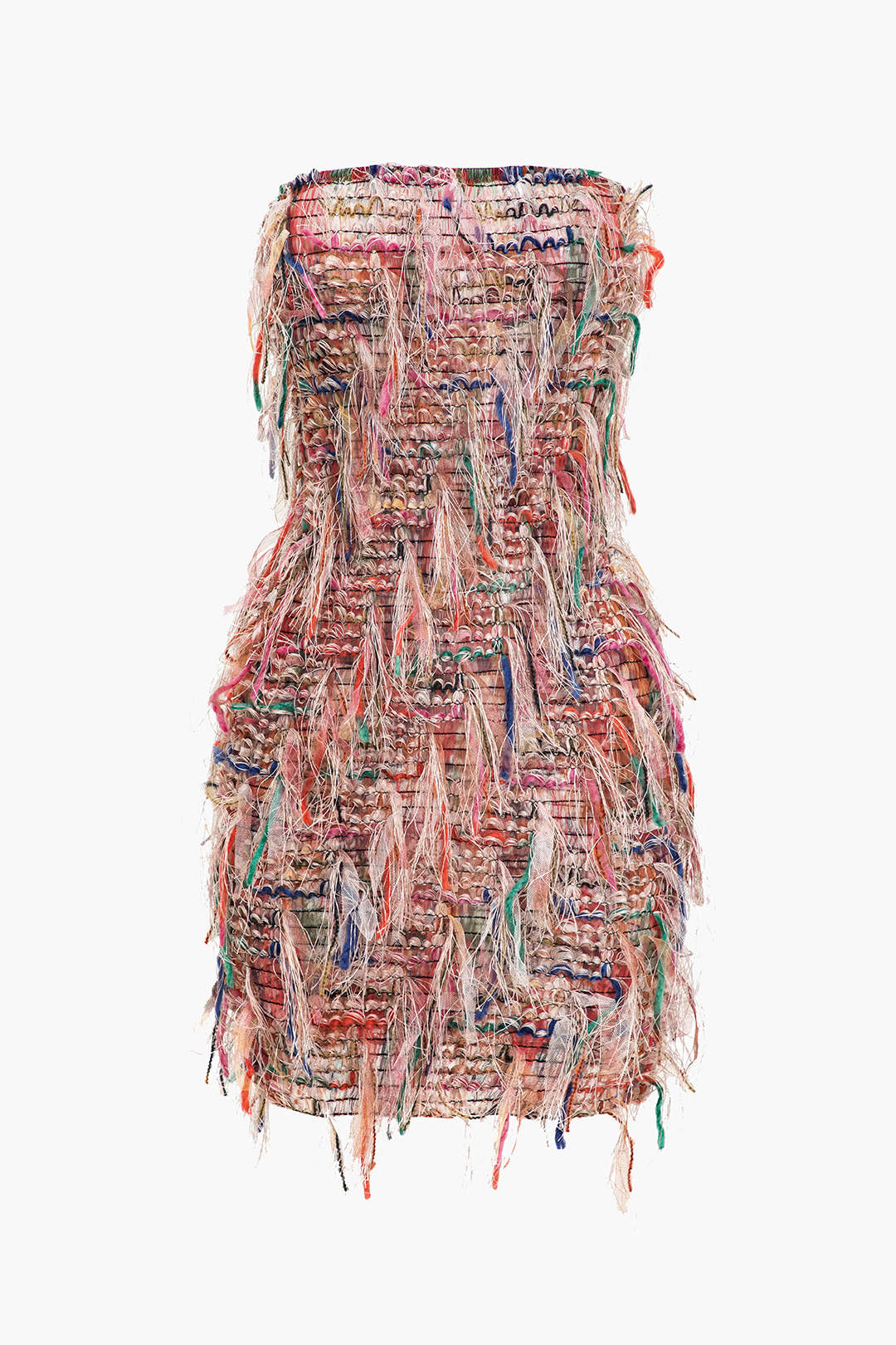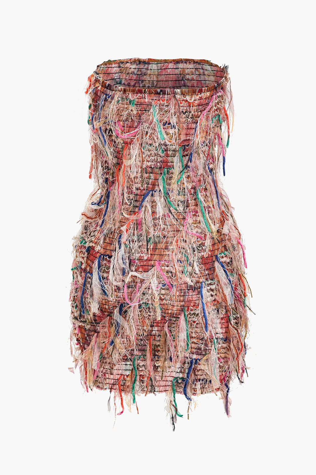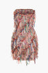 Franjlı Ağı Mesh Straplez Mini Elbise