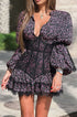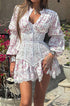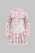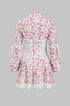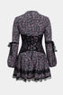 Dantel Kenar Detaylı Ditsy Çiçek Desenli Uzun Kollu Mini Elbise