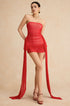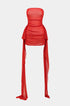 Ağ Mesh Ruched Straplez Mini Elbise