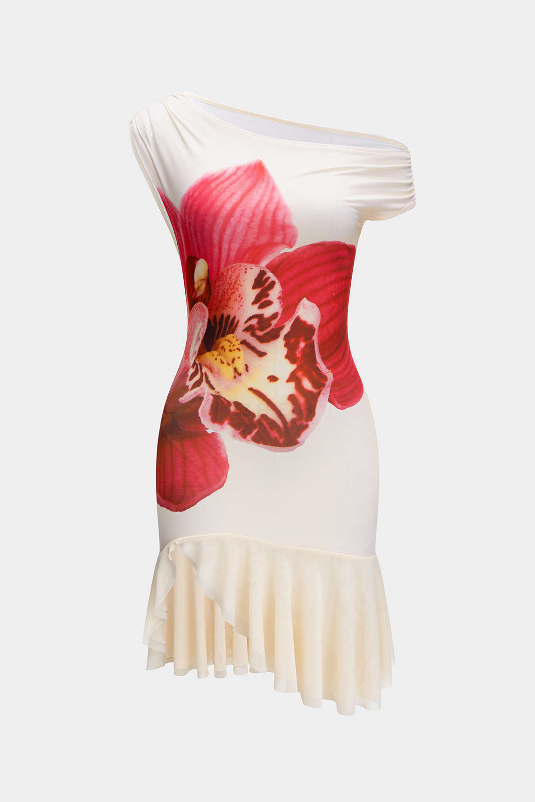Çiçek Desenli Asimetrik Mini Elbise