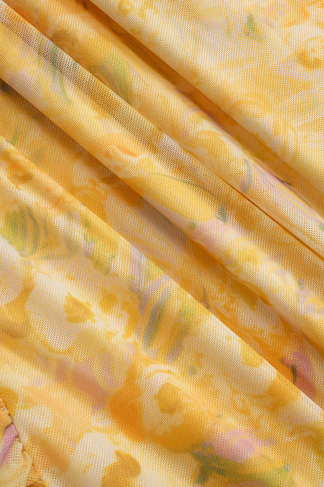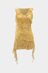 Çiçek Desenli File Ruffle Detaylı V Yaka Kolsuz Mini Elbise