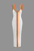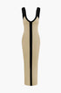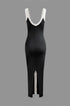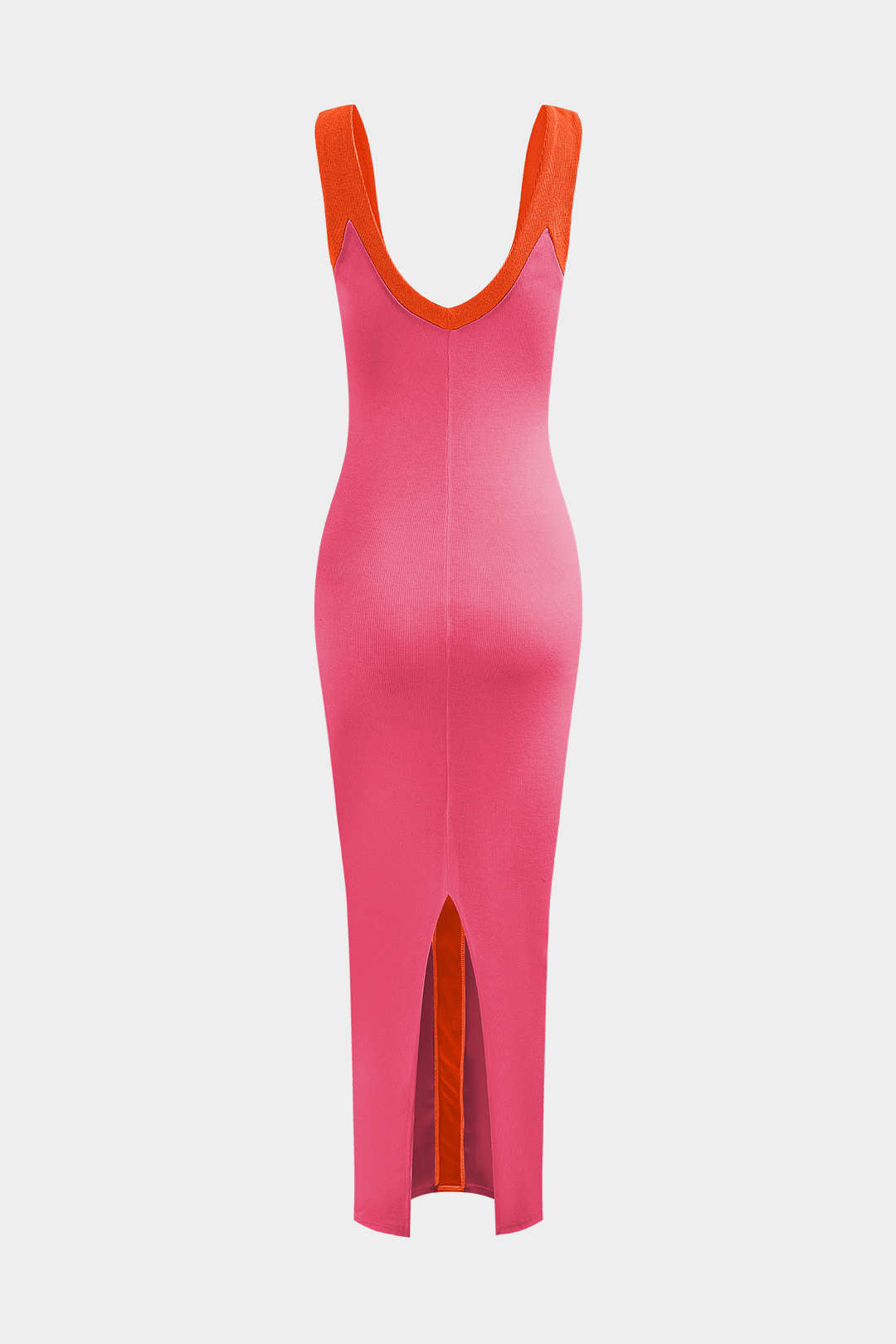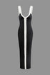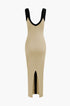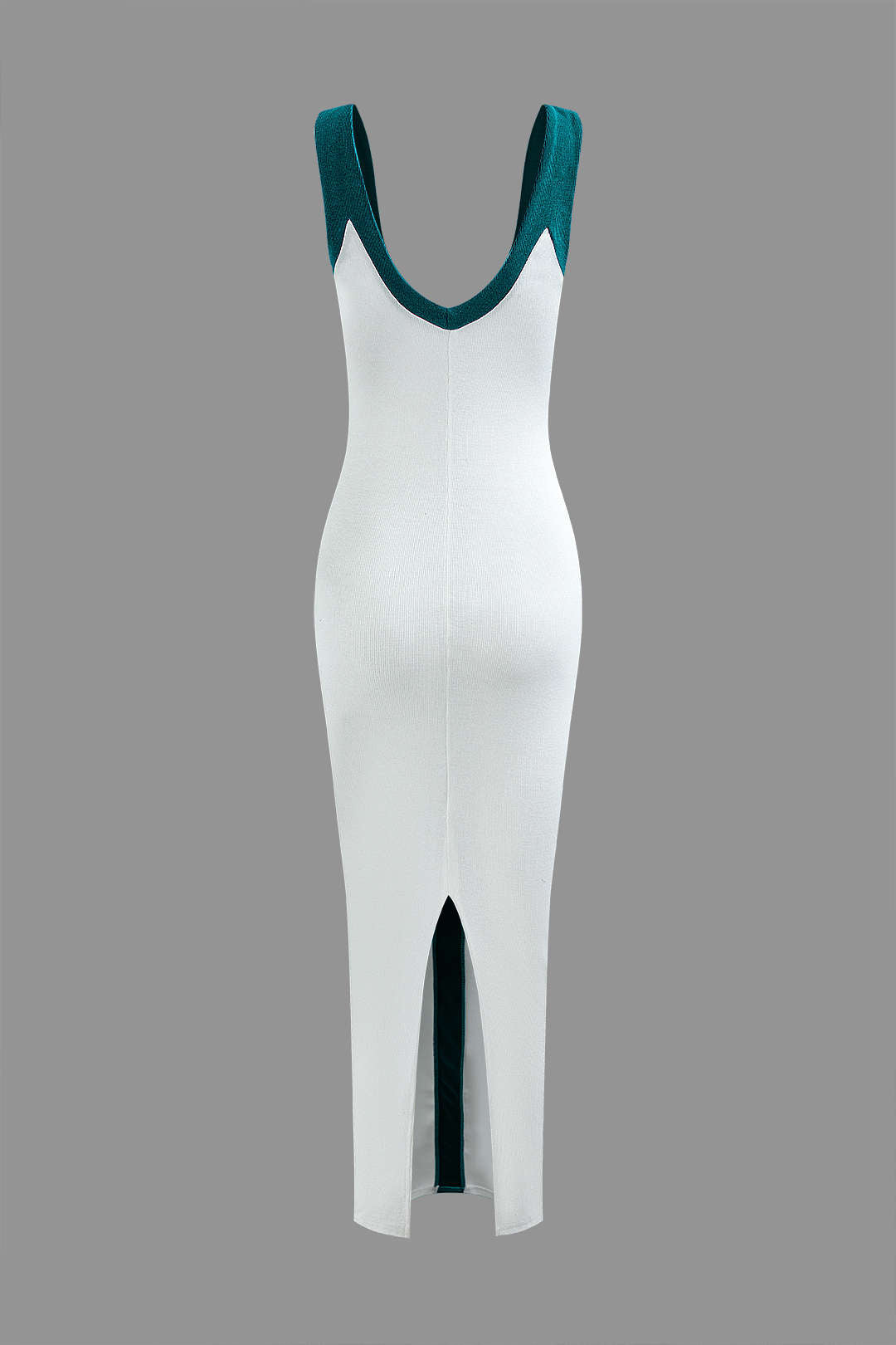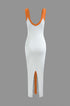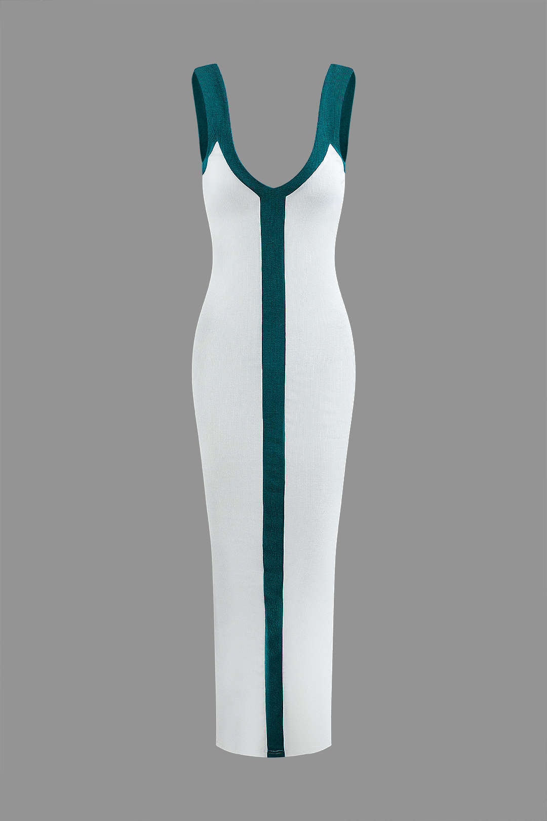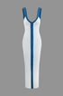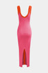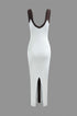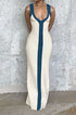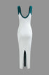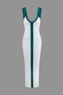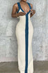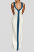 Renk Bloklu V Yaka Ribana Kesik Maxi Elbise