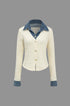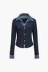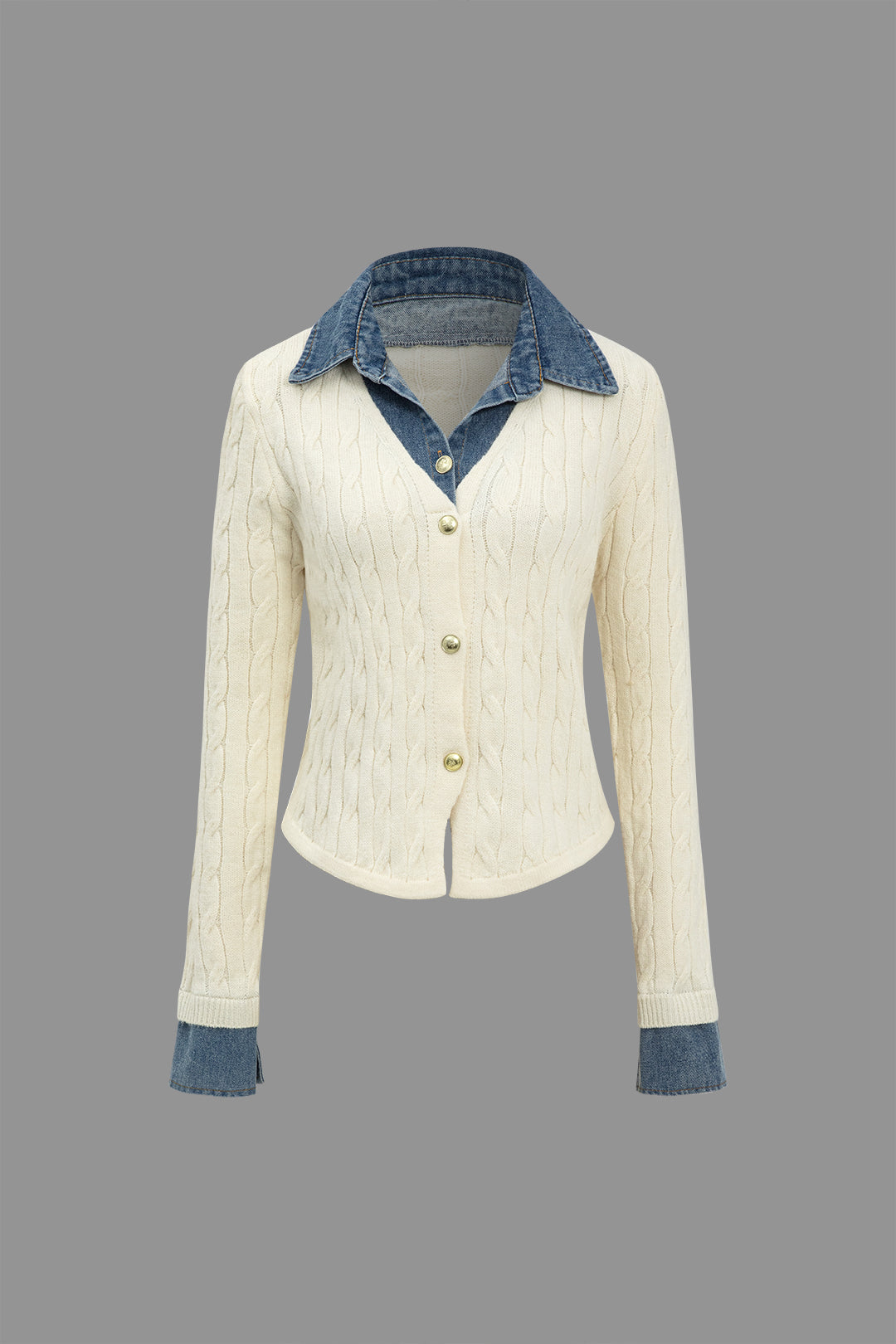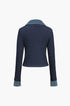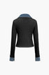 Örgü Denim Gömlek Yaka Uzun Kollu Üst