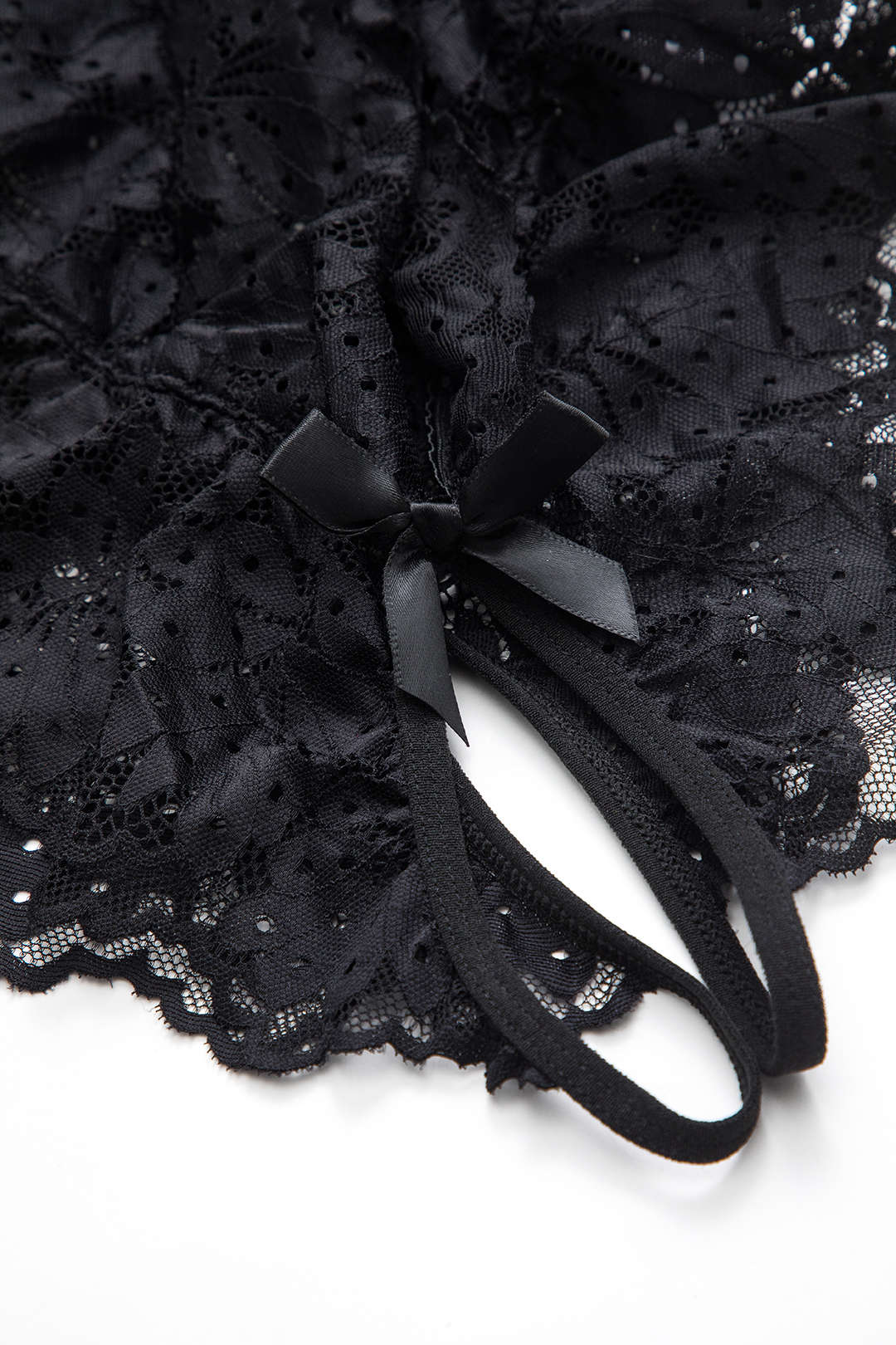 Dantel Kesik Detaylı Bağlama Önü ve Sırt Açık Bodysuit