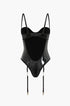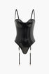 Suni Deri Kesik Detaylı İç Giyim Garter Seti
