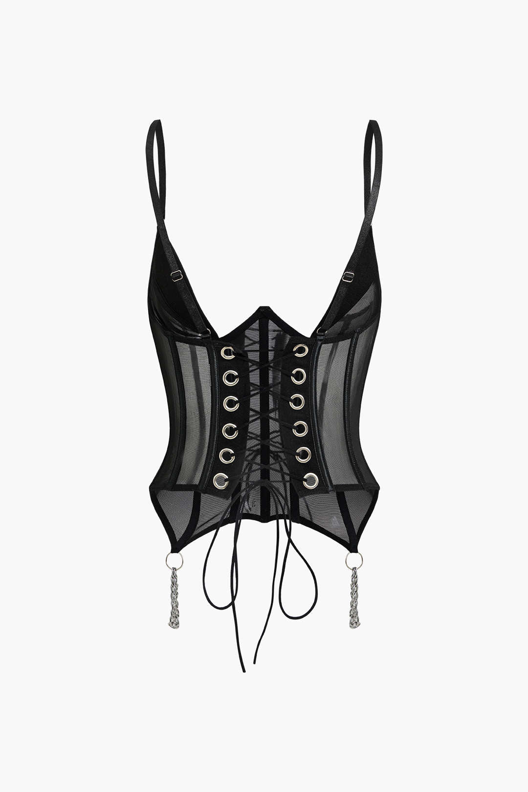 Tül Zincir Detaylı Büstiyer Bağlamalı Jartiyer Takımı