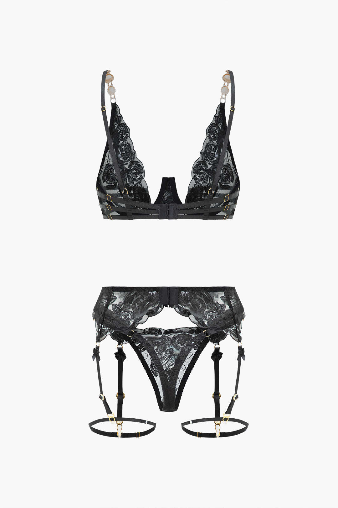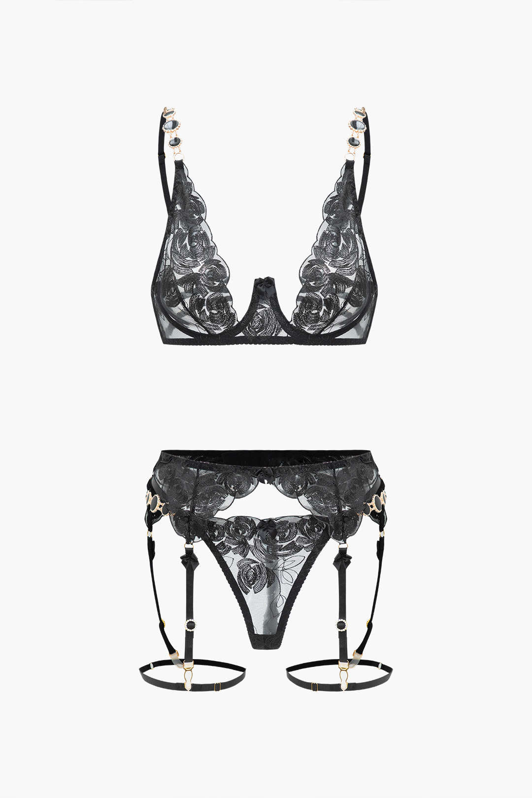 OLYSSA Dantel Metalik Zincir Nakışlı Jartiyer Takımı