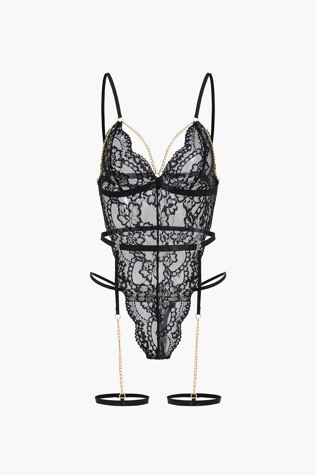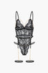 Dantel Metalik Zincir Kesik Detaylı Şeffaf İç Giyim Garter Seti