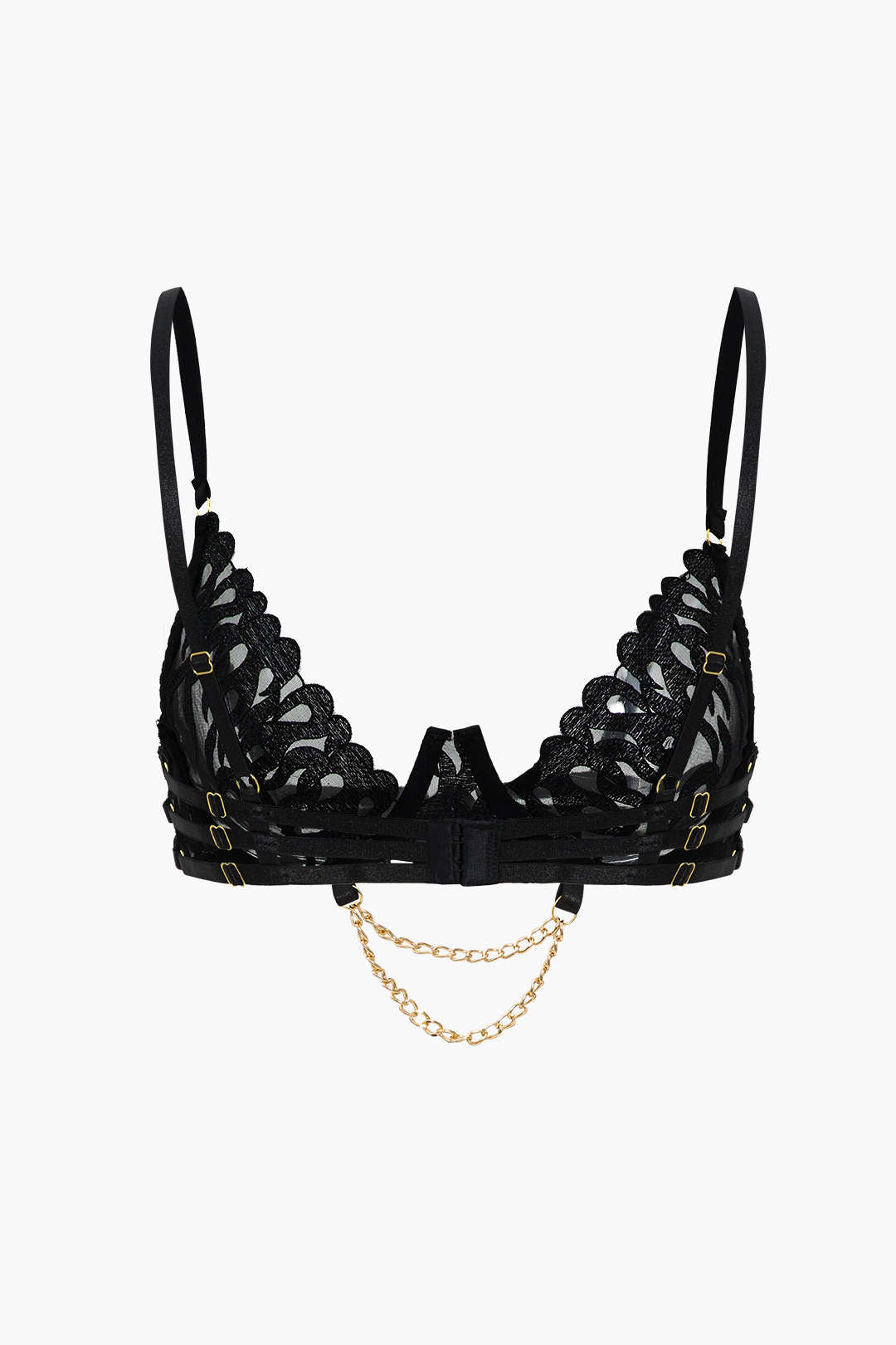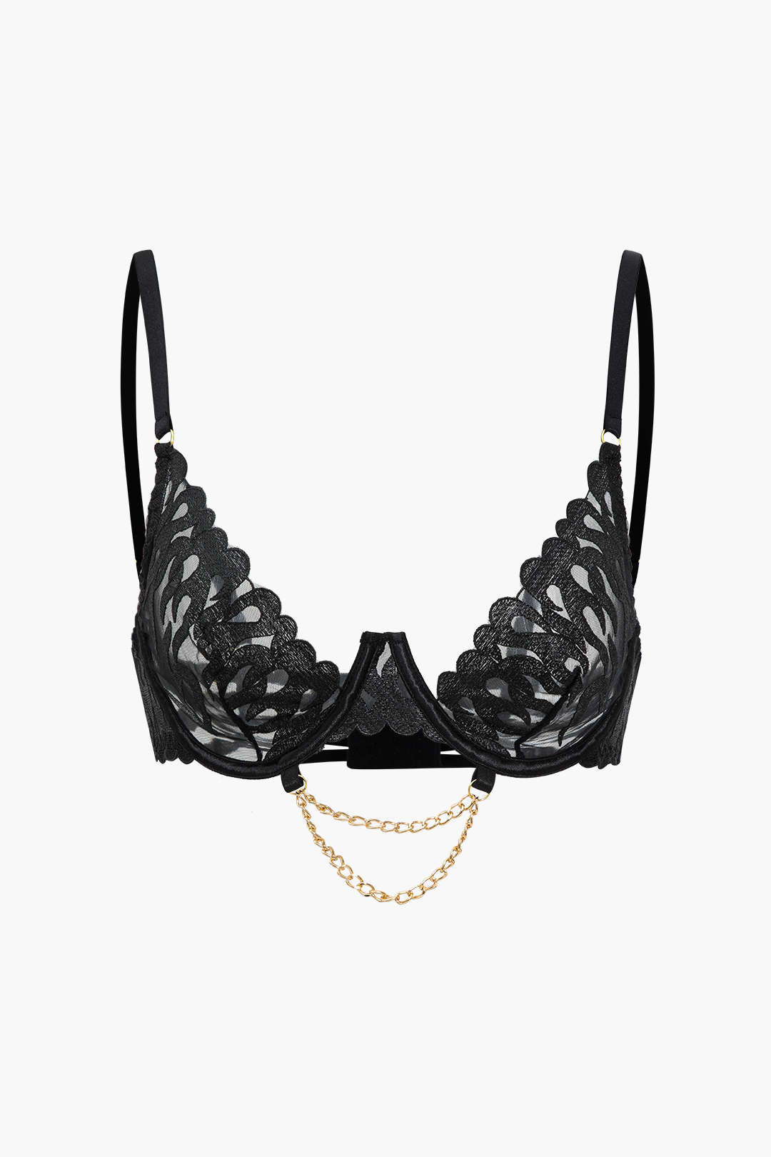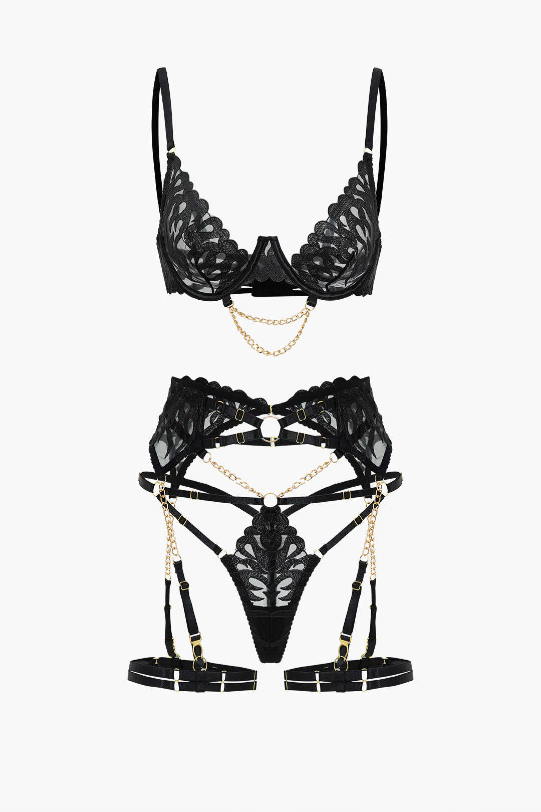 Nakışlı Zincir Detaylı Kesik İç Giyim Garter Seti