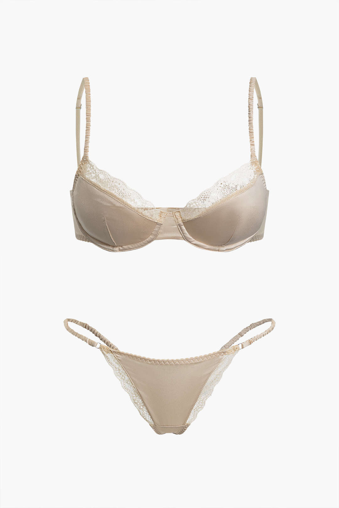 Saten Dantel İşlemeli Büstiyer İki Parçalı İç Giyim Takımı