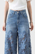 Dantel Kesim Yamalı Geniş Paça Kot Pantolon