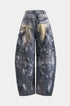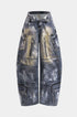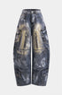 Soyut Baskılı Cep Detaylı Varil Pantolon