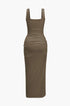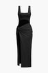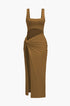 Sıcak Dönüşlü Ön Kesik Detaylı Slit Midi Elbise