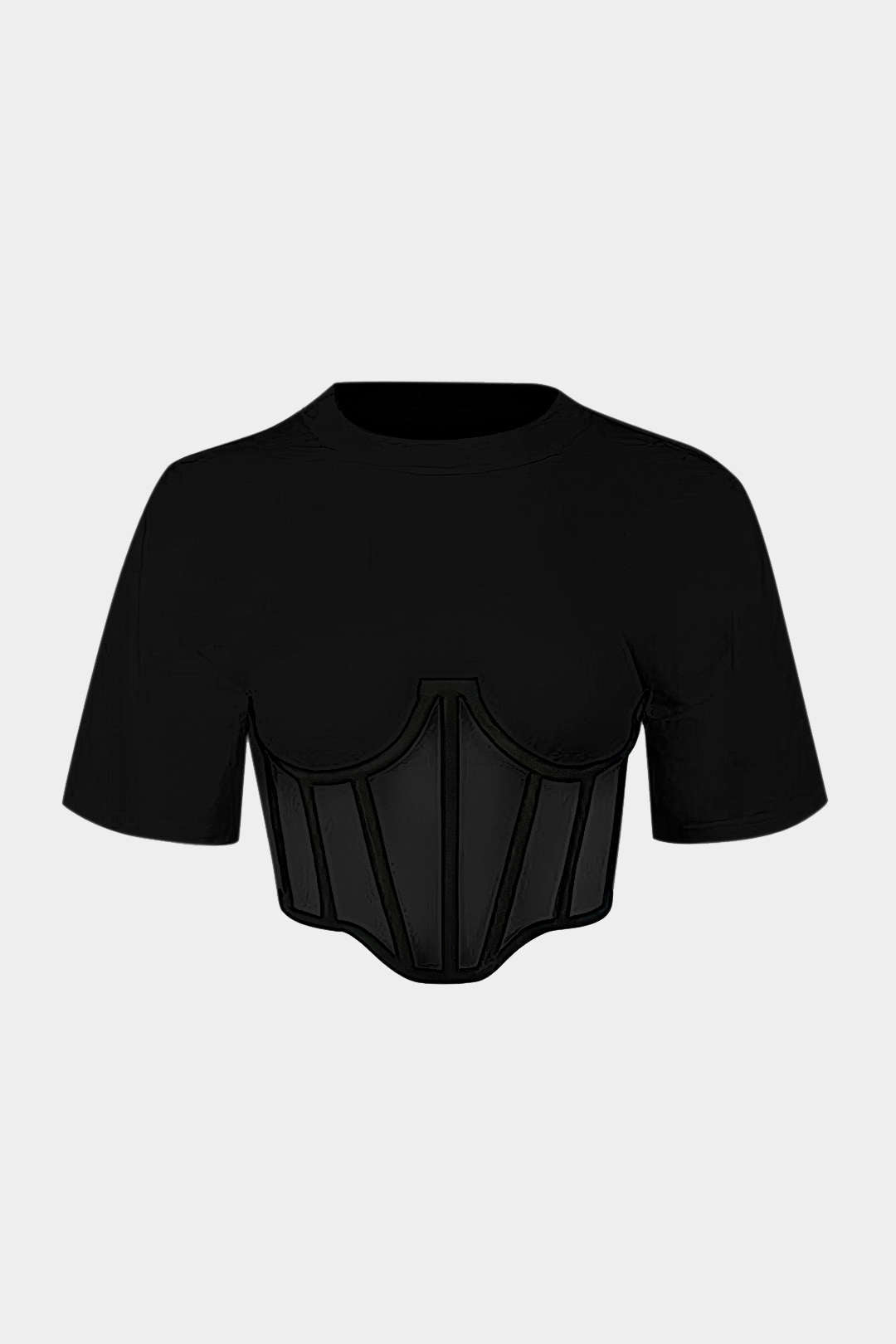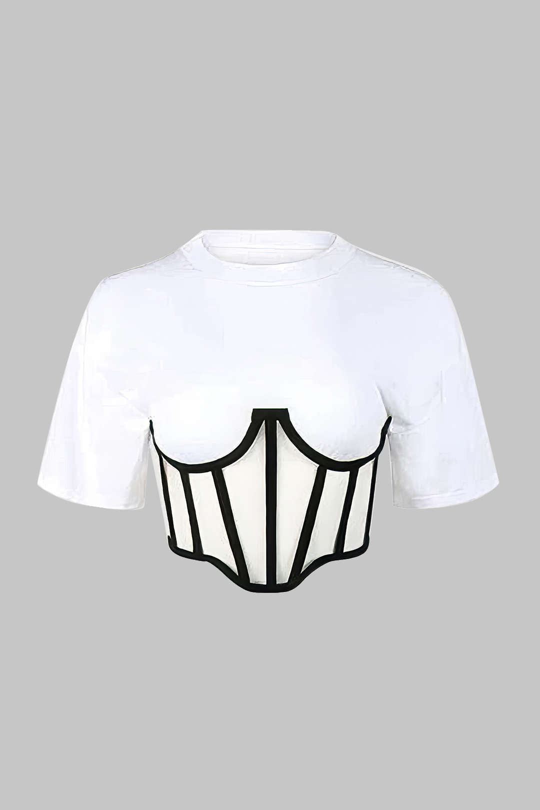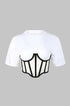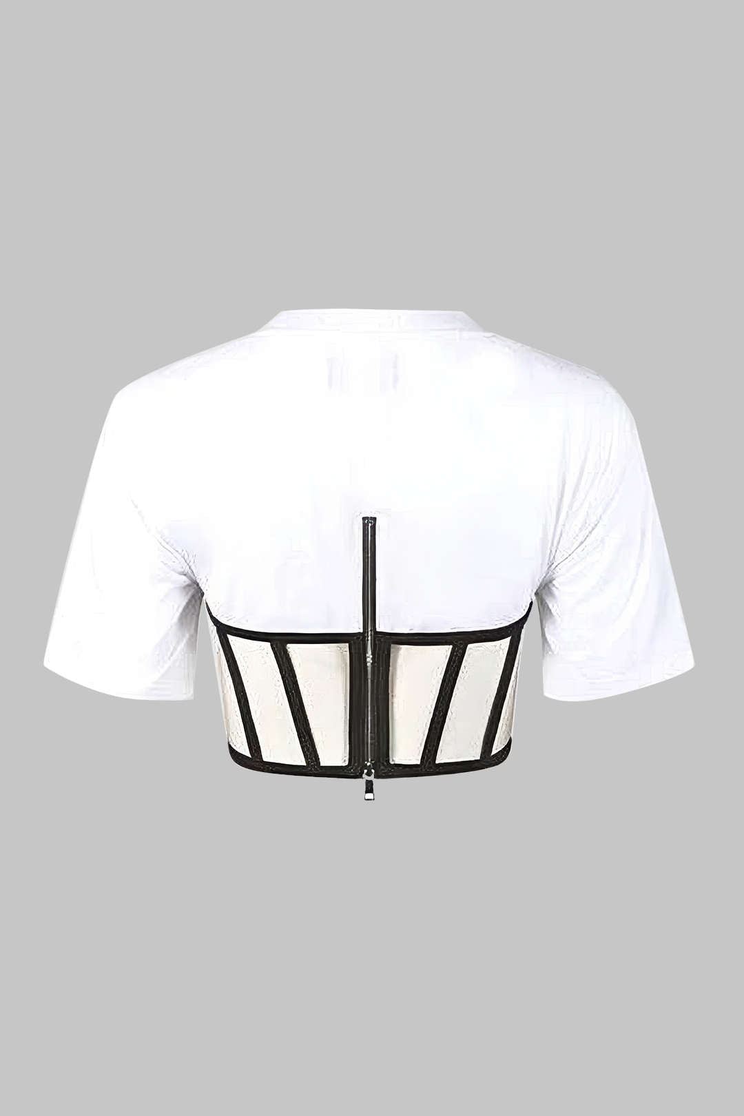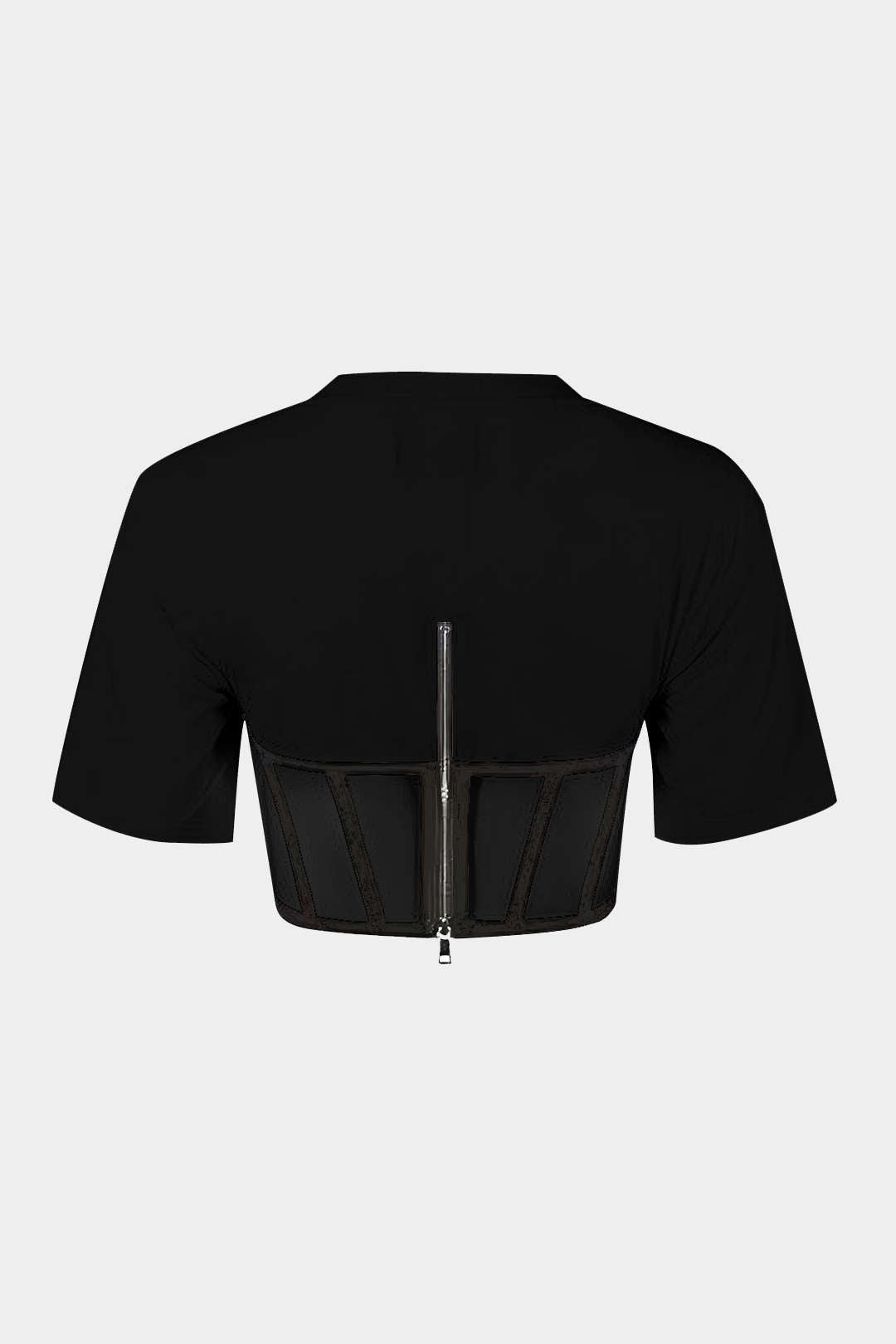 fermuar Kısa Kollu Yuvarlak Yaka Korse Bel Tişört