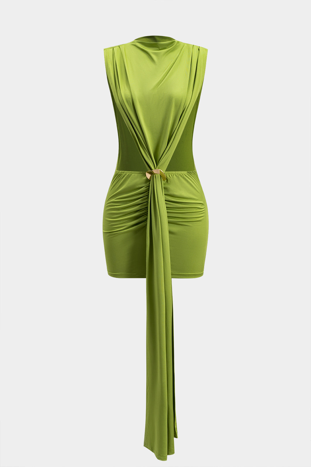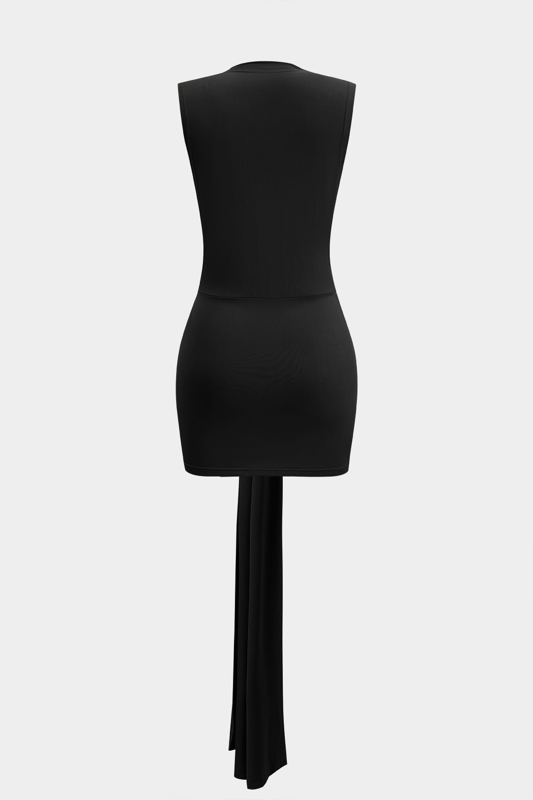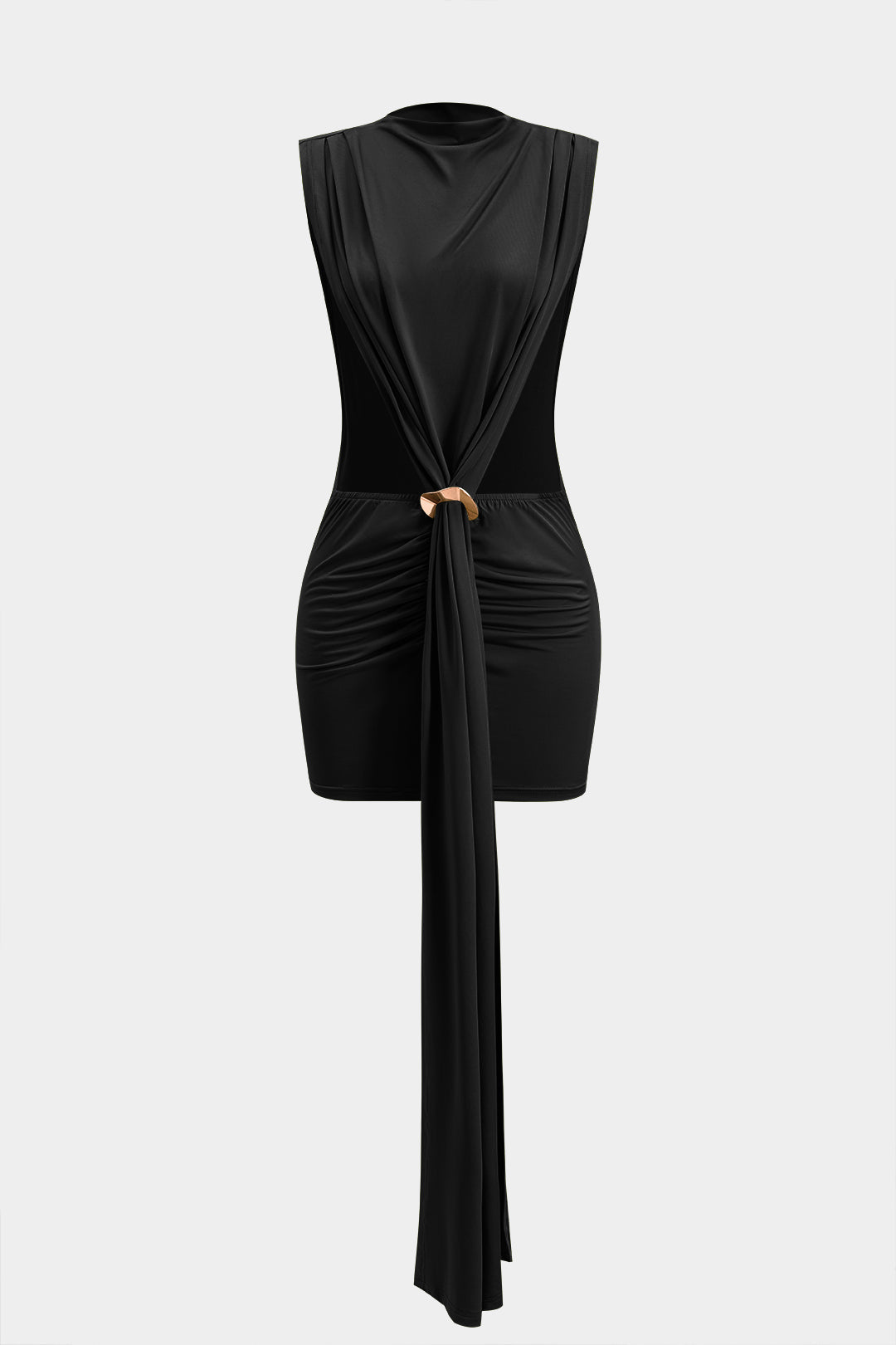 Metal Dekor Fırfırlı Kolsuz Mini Elbise