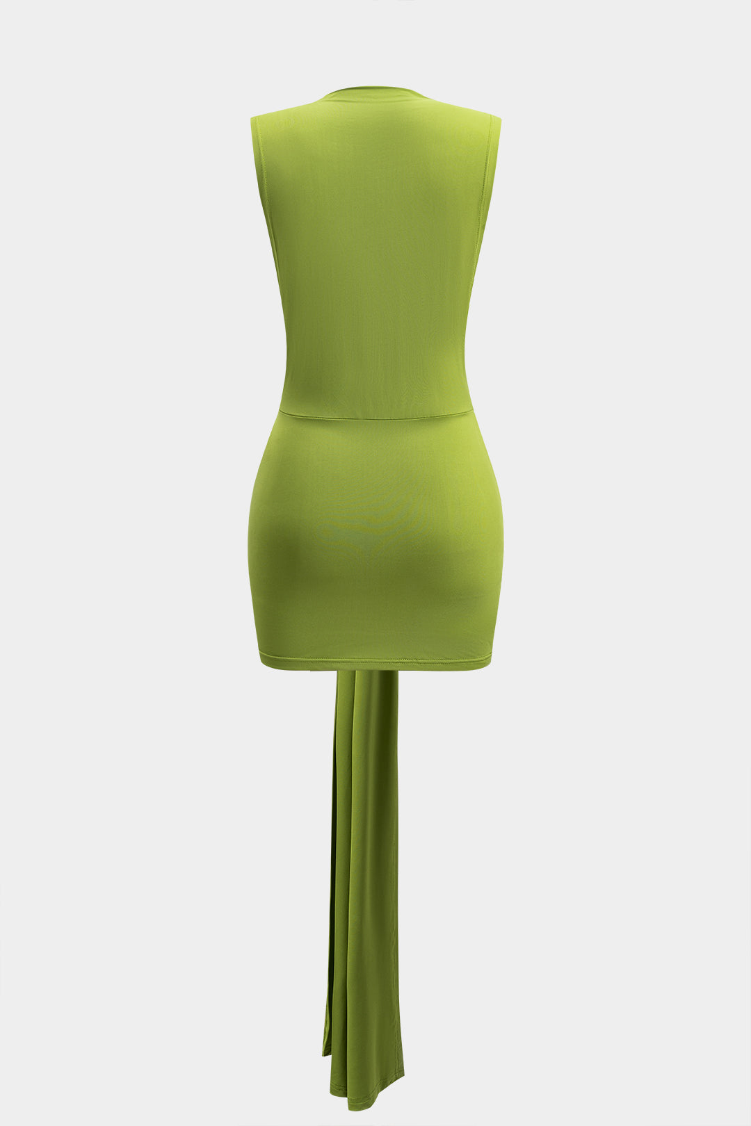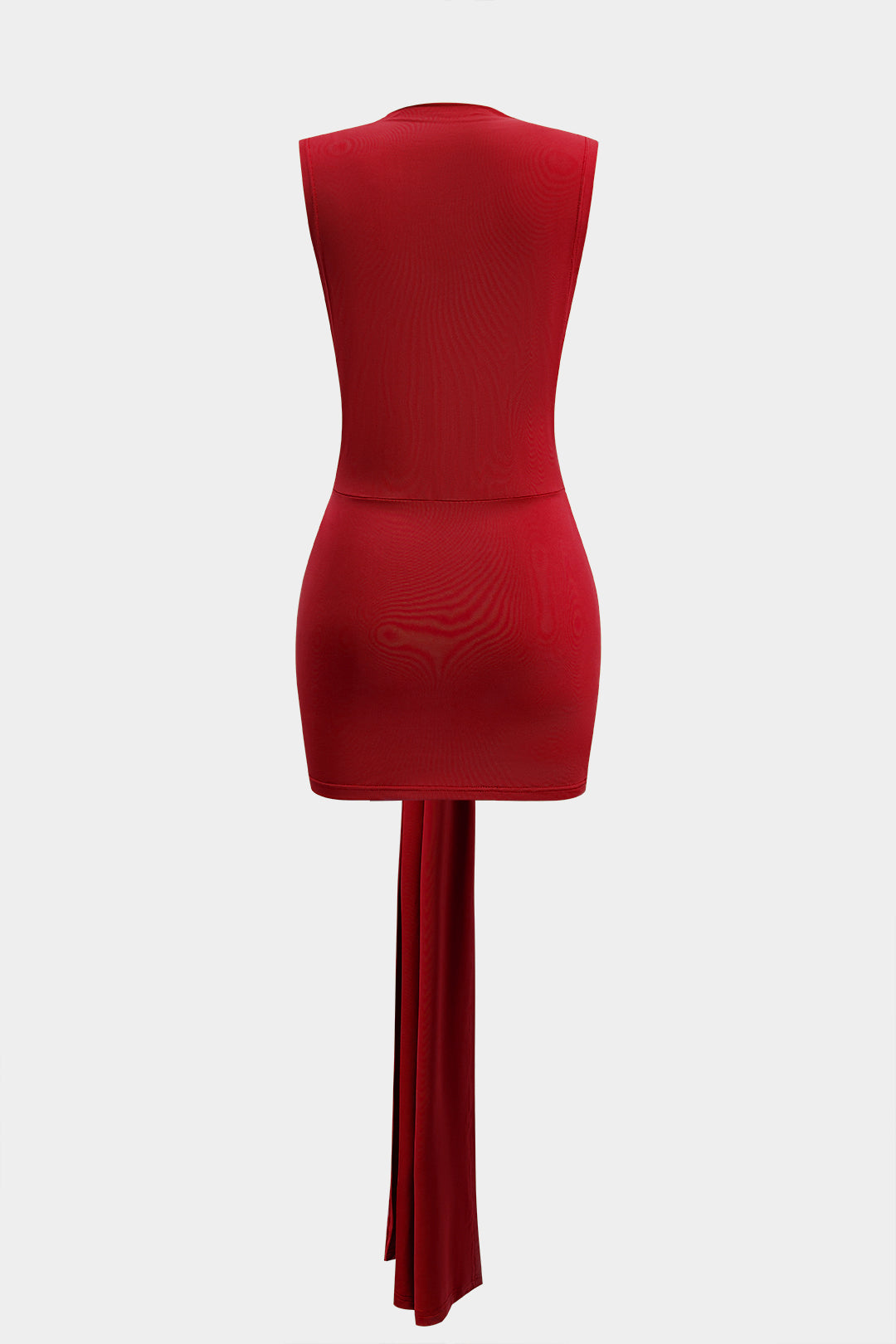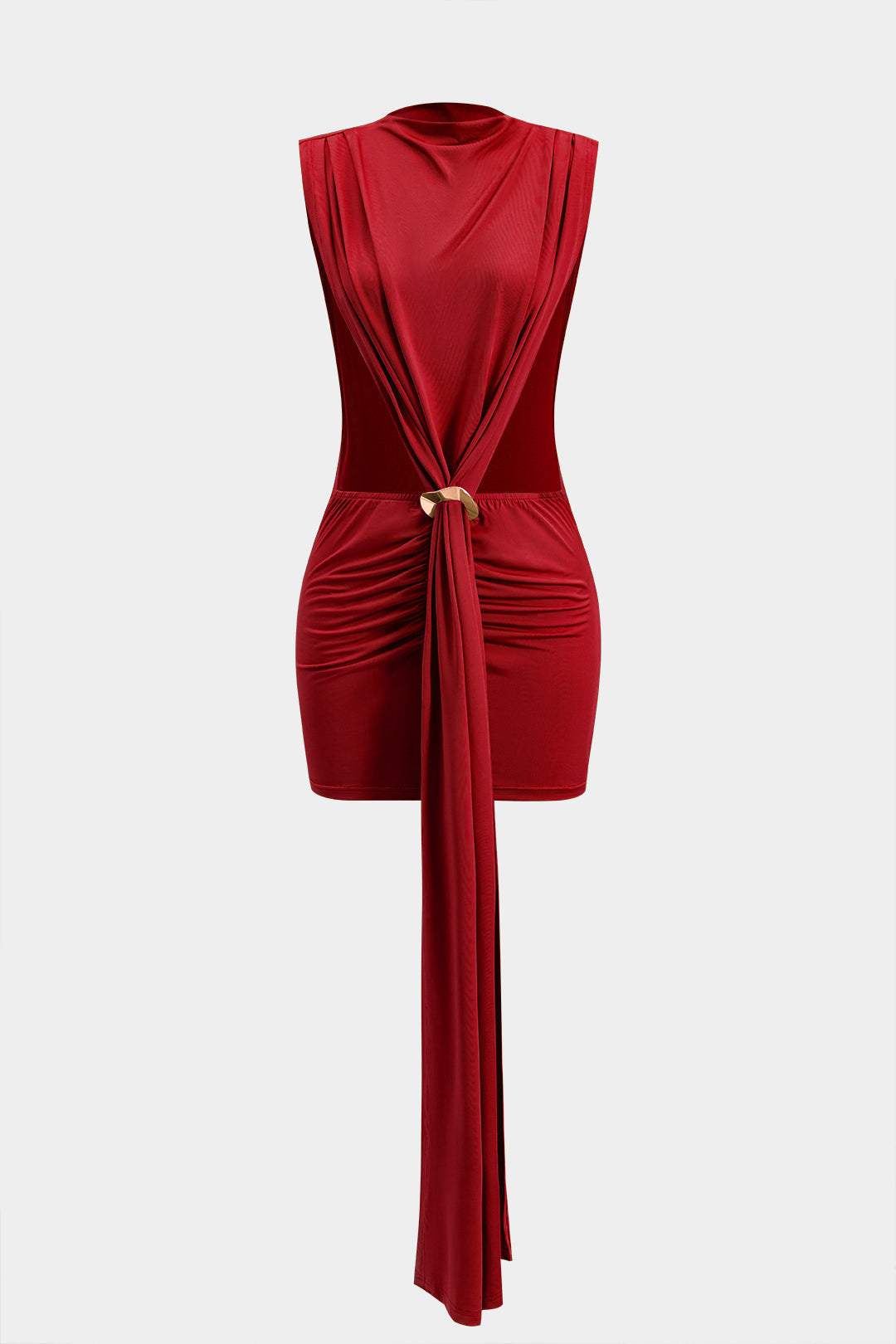 Metal Dekor Fırfırlı Kolsuz Mini Elbise