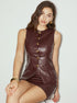 Metal Düğmeli Suni Deri Skinny Set