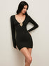 Göz alıcı Metal Detaylı Uzun Kol Abiye Elbise