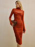 Şeffaf Yarım Yaka Detaylı Şık Plise Jarse Abiye Elbise