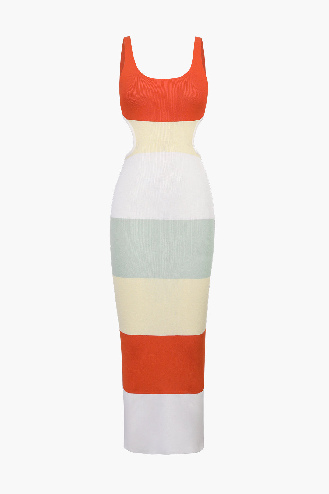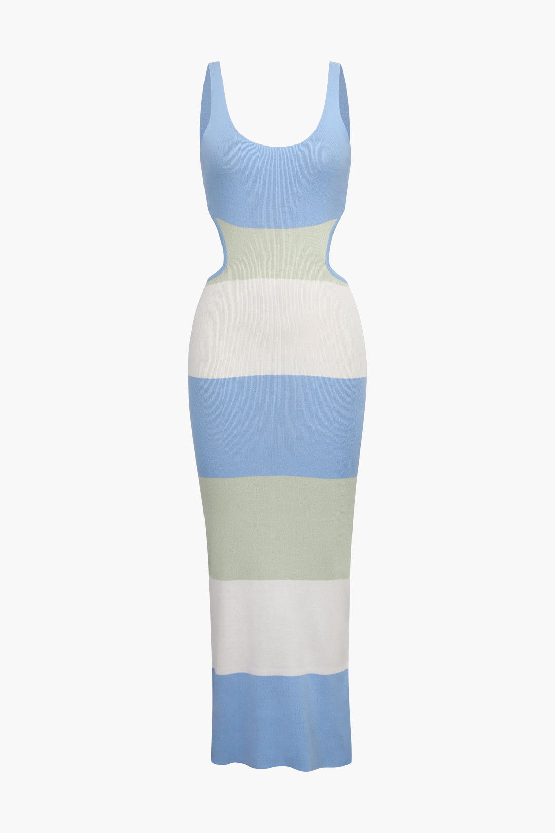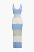 Çok Renkli Çizgili Triko Sırt Açık Maxi Elbise