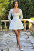 Olyssa Kristin Kare Yaka Saten Mini Elbise