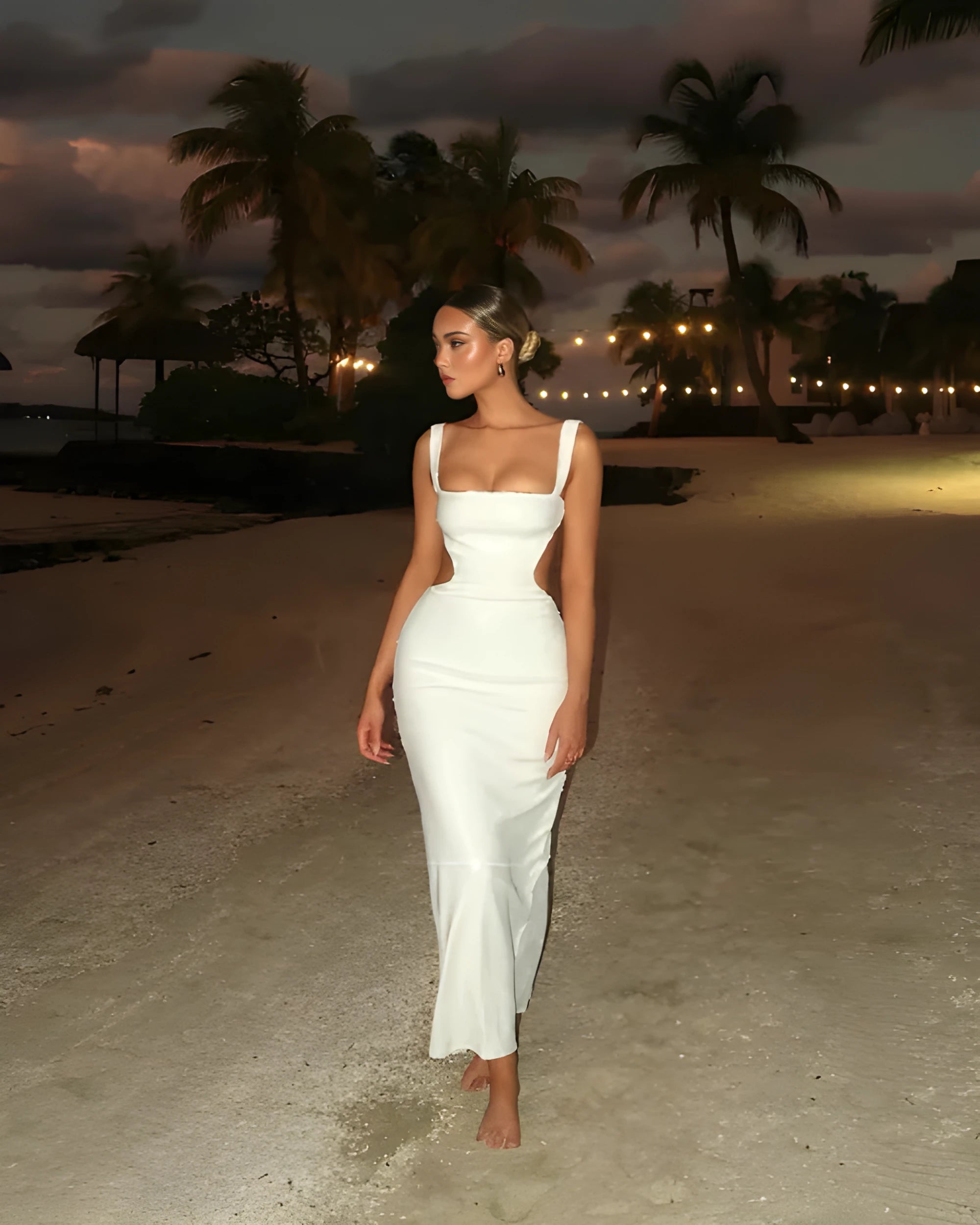 Bu elbise, özel günler ve davetlerde zarafetle öne çıkmak isteyenler için ideal bir seçim sunar. 🤍