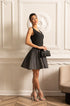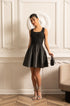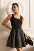 Pırıltılı Gümüş Dikey Çizgili Zarif Mini Elbise