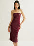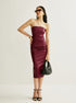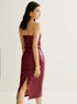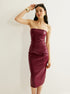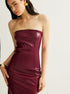 Şık PU Askısız Yırtmaç Tasarımlı Elbise