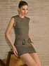 Şık Retro Ekose Fermuarlı Askılı Elbise