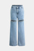 Taş İşlemeli Kesik Kesim Düz Paça Kot Pantolon